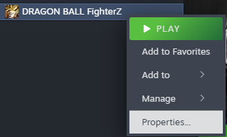 2. بعد الانتهاء من التنزيل، قم باستخراج الملف إلى سطح المكتب أو مجلد آخر، ثم افتح برنامج Steam وابحث عن لعبة *دراغون بول فايترز*، ثم انقر بزر الماوس الأيمن واختر "الخصائص".
