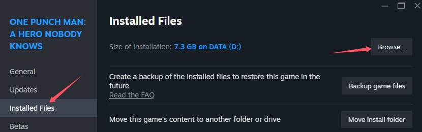 ملاحظة: إذا كنت ترغب في استعادة الملف الأصلي لاحقًا، يمكنك الذهاب إلى خصائص اللعبة، والنقر على "الملفات المحلية"، ثم اختيار "التحقق من سلامة ملفات اللعبة". أو يمكنك عمل نسخة احتياطية من الملف "ONE PUNCH MAN A HERO NOBODY KNOWS.exe" مسبقًا.