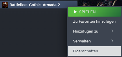 2. Nachdem der Download abgeschlossen ist, entpacken Sie die Datei auf den Desktop oder in einen anderen Ordner. Öffnen Sie dann Steam, suchen Sie nach *Battlefleet Gothic: Armada 2*, klicken Sie mit der rechten Maustaste und wählen Sie „Eigenschaften“.