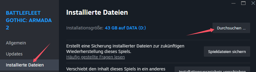 Hinweis: Wenn Sie die Originaldatei später wiederherstellen möchten, gehen Sie zu den Spieleinstellungen, klicken Sie auf „Lokale Dateien“ und anschließend auf „Integrität der Spieledateien überprüfen“. Alternativ können Sie die Datei „BattlefleetGothic2.exe“ im Voraus sichern.