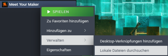 2. Nachdem der Download abgeschlossen ist, entpacken Sie die Datei direkt in das Hauptverzeichnis des Spiels. Öffnen Sie dann Steam, suchen Sie nach *Meet Your Maker*, klicken Sie mit der rechten Maustaste und wählen Sie „Verwalten“, dann „Lokale Dateien durchsuchen“, um direkt zum Hauptordner des Spiels zu gelangen.