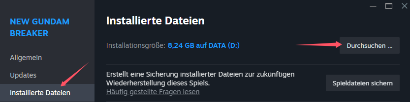 Hinweis: Wenn Sie die Originaldatei wiederherstellen möchten, gehen Sie zu den Spieleinstellungen, klicken Sie auf „Lokale Dateien“ und dann auf „Integrität der Spieldateien überprüfen“, um die Datei wiederherzustellen, oder erstellen Sie eine Sicherungskopie von „NewGundamBreaker.exe“.