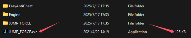 Nota: Si necesita restaurar el archivo original, vaya a las propiedades del juego, haga clic en "Archivos locales" y luego en "Verificar integridad de los archivos del juego" para restaurar el archivo, o realice una copia de seguridad previa de "JUMP_FORCE.exe".