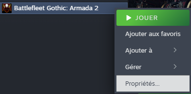 2. Une fois le téléchargement terminé, décompressez-le sur le bureau ou dans un autre dossier. Ensuite, ouvrez Steam, trouvez *Battlefleet Gothic: Armada 2*, faites un clic droit et sélectionnez « Propriétés ».