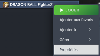 2. Une fois le téléchargement terminé, décompressez-le sur le bureau ou dans un autre dossier. Ensuite, ouvrez Steam, trouvez *Dragon Ball FighterZ*, faites un clic droit et sélectionnez « Propriétés ».