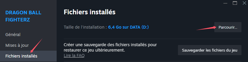 Remarque : Si vous souhaitez restaurer le fichier d'origine ultérieurement, allez dans les propriétés du jeu, cliquez sur « Fichiers locaires », puis sélectionnez « Vérifier l'intégrité des fichiers du jeu ». Vous pouvez également sauvegarder le fichier "DBFighterZ.exe" à l'avance.