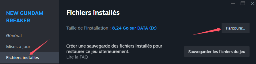 Remarque : Si vous souhaitez restaurer le fichier d'origine, accédez aux propriétés du jeu, cliquez sur « Fichiers locaux », puis sur « Vérifier l'intégrité des fichiers du jeu » pour restaurer le fichier ou faites une sauvegarde préalable de « NewGundamBreaker.exe ».