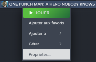 2. Une fois le téléchargement terminé, décompressez-le sur le bureau ou dans un autre dossier. Ensuite, ouvrez Steam, trouvez *One Punch Man: A Hero Nobody Knows*, faites un clic droit et sélectionnez « Propriétés ».