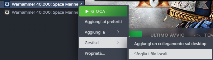 2. Una volta completato il download, estrai il file sul desktop o in un'altra cartella. Apri Steam, trova *Warhammer 40,000: Space Marine 2*, fai clic destro su "Gestisci", quindi seleziona "Esplora file locali".