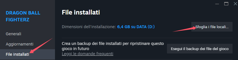 Nota: Se in futuro desideri ripristinare il file originale, vai alle proprietà del gioco, clicca su "File locali" e seleziona "Verifica integrità dei file del gioco". In alternativa, puoi effettuare un backup anticipato del file "DBFighterZ.exe".