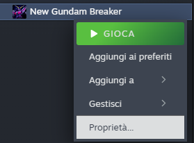 2. Dopo il download, estrai i file sul desktop o in un'altra cartella, quindi apri Steam e trova New Gundam Breaker. Fai clic con il tasto destro sul gioco e seleziona "Proprietà".