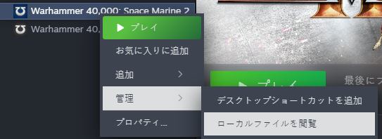 2. ダウンロードが完了したら、デスクトップまたは他のフォルダに解凍し、Steamを開いて『ウォーハンマー40,000 スペースマリン2』を見つけます。右クリックして「管理」→「ローカルファイルの参照」を選択します。