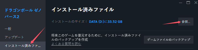3. 「ローカルファイル」をクリックし、「ローカルファイルの参照」を選んでゲームのルートディレクトリにアクセスします。