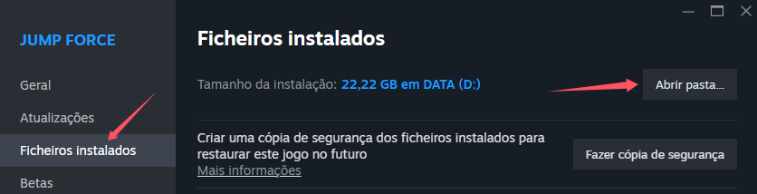 Observação: Se quiser restaurar o arquivo original, acesse as propriedades do jogo, clique em "Arquivos Locais" e depois em "Verificar Integridade dos Arquivos do Jogo" para restaurar o arquivo ou faça uma cópia de segurança do "JUMP_FORCE.exe" com antecedência.