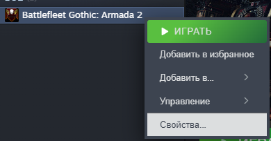 2. После завершения загрузки распакуйте файл на рабочий стол или в другую папку, затем откройте Steam, найдите игру *Battlefleet Gothic: Armada 2*, щелкните правой кнопкой мыши — «Свойства».