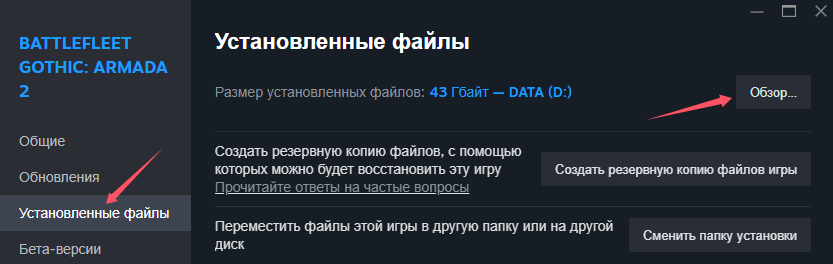 Примечание: Если вы хотите восстановить оригинальный файл, перейдите в свойства игры, откройте вкладку «Локальные файлы» и нажмите «Проверить целостность файлов игры». Либо заранее сделайте резервную копию файла «BattlefleetGothic2.exe».