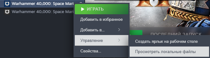 2. После завершения загрузки распакуйте файл на рабочий стол или в другую папку, затем откройте Steam, найдите игру *Warhammer 40,000: Space Marine 2*, щелкните правой кнопкой мыши — «Управление» → «Просмотр локальных файлов».