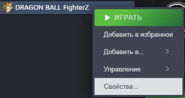 2. После завершения загрузки распакуйте файл на рабочий стол или в другую папку, затем откройте Steam, найдите игру *Dragon Ball FighterZ*, щелкните правой кнопкой мыши — «Свойства».