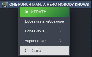 2. После завершения загрузки распакуйте файл на рабочий стол или в другую папку, затем откройте Steam, найдите игру *One Punch Man: A Hero Nobody Knows*, щелкните правой кнопкой мыши — «Свойства».