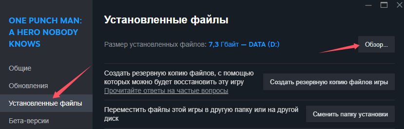 Примечание: Если вы хотите восстановить оригинальный файл, перейдите в свойства игры, откройте вкладку «Локальные файлы» и нажмите «Проверить целостность файлов игры». Либо заранее сделайте резервную копию файла «ONE PUNCH MAN A HERO NOBODY KNOWS.exe».