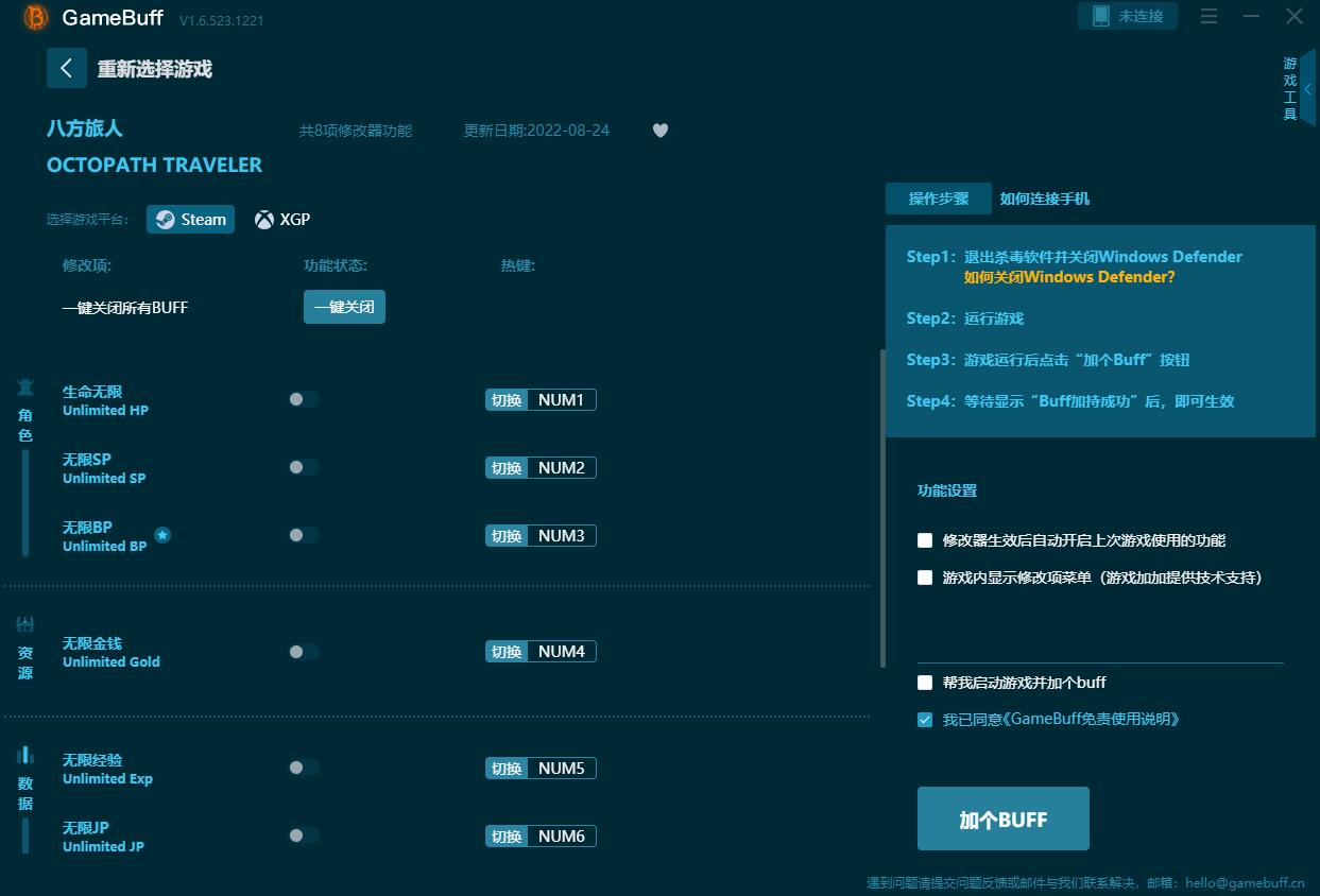 八方旅人/歧路旅人修改器下载无限生命、无限SP、无限BP无限金币